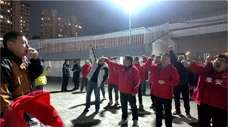 啦啦队员全情投入 铿锵有力的鼓点声中 队员们不断练习 磨合口号 呐喊助威声节奏鲜明 气势如虹 力求在比赛当日营造出最燃的氛围 将振奋人心的力量 传递给每一位球员“‘淮超’大战一触即发,球队在训练,啦啦队加油团也不能落后。在比赛的时候,我们要用最响亮的呐喊声为我们的淮安区球队加油助威。”球迷杨波表示。